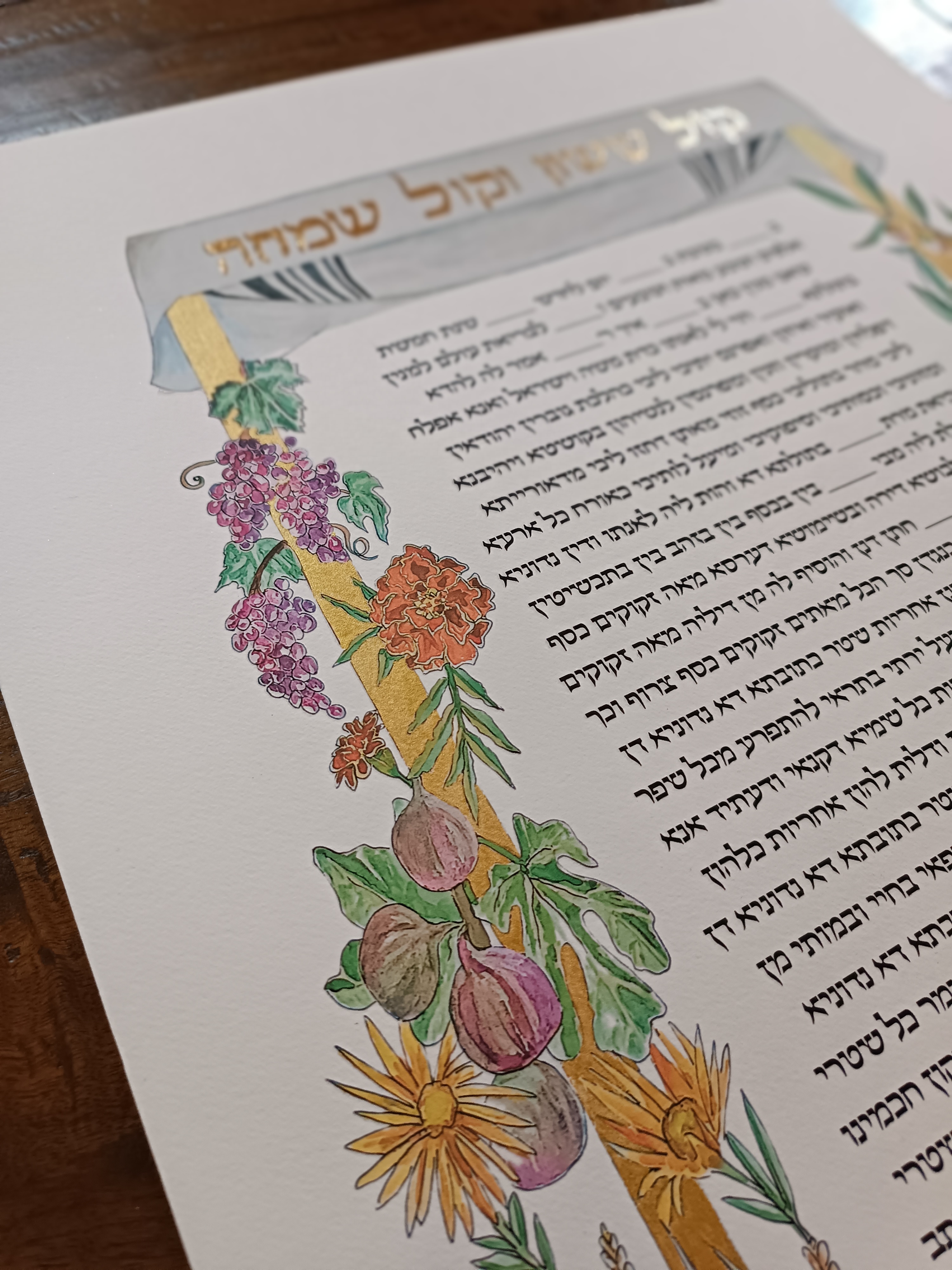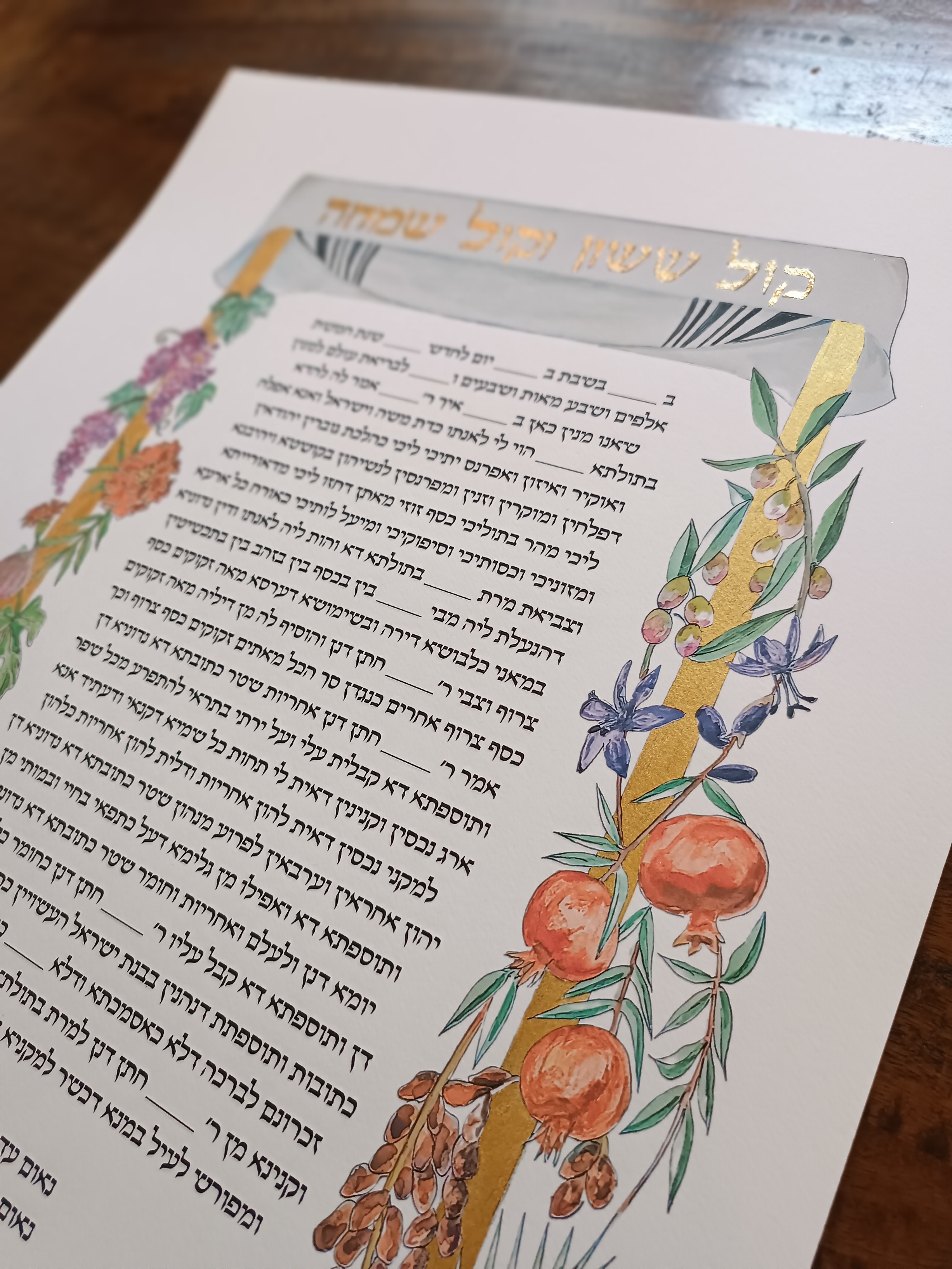 Ketubah Text: After placing your order, we will contact you within 24-48 hours to discuss the text you'd like on your ketubah.