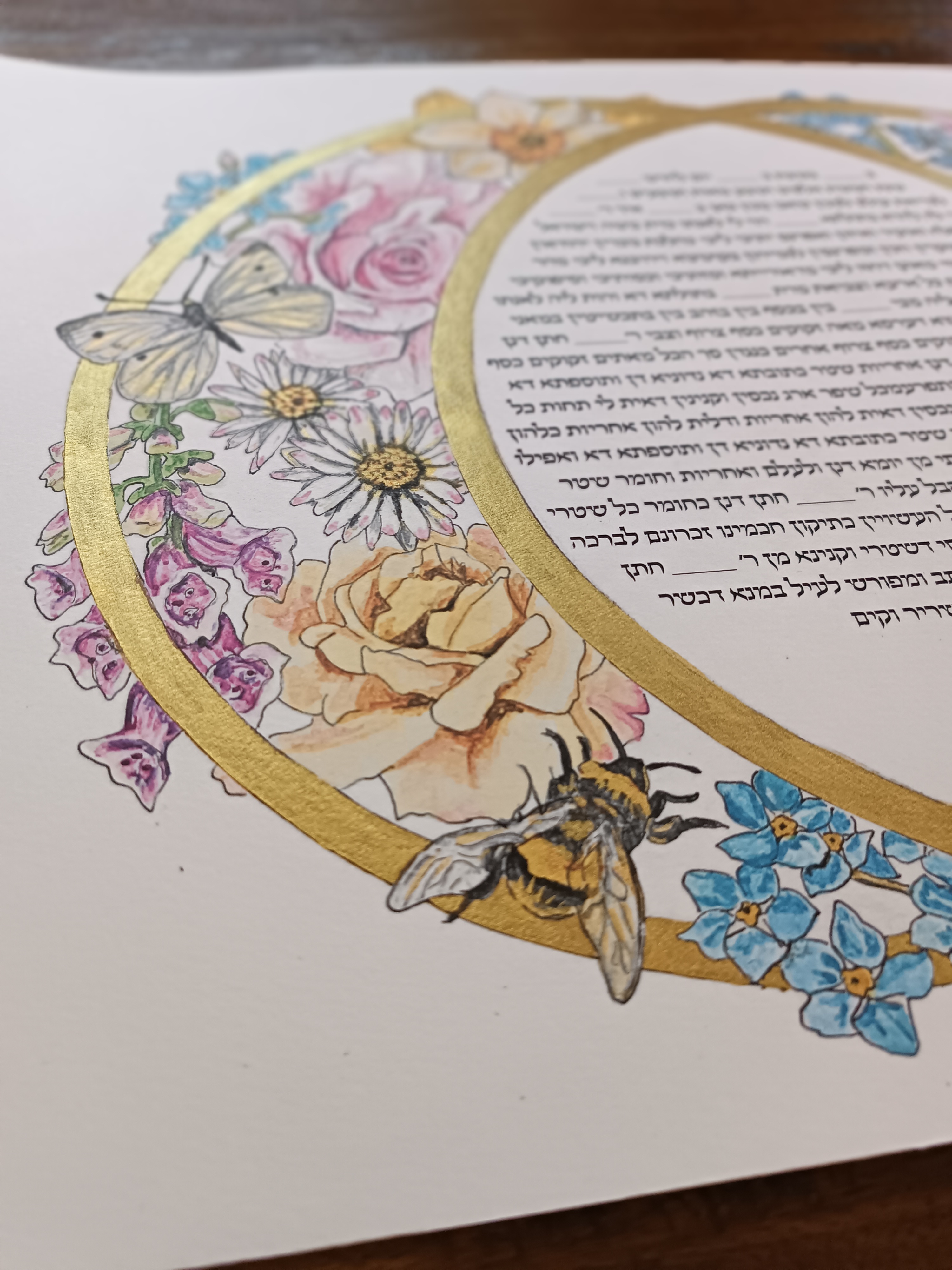 Delivery: Free shipping within the UK. International shipping available on request here. Orders typically take 2-3 weeks to get printed, finalised and shipped once we have received your ketubah text.